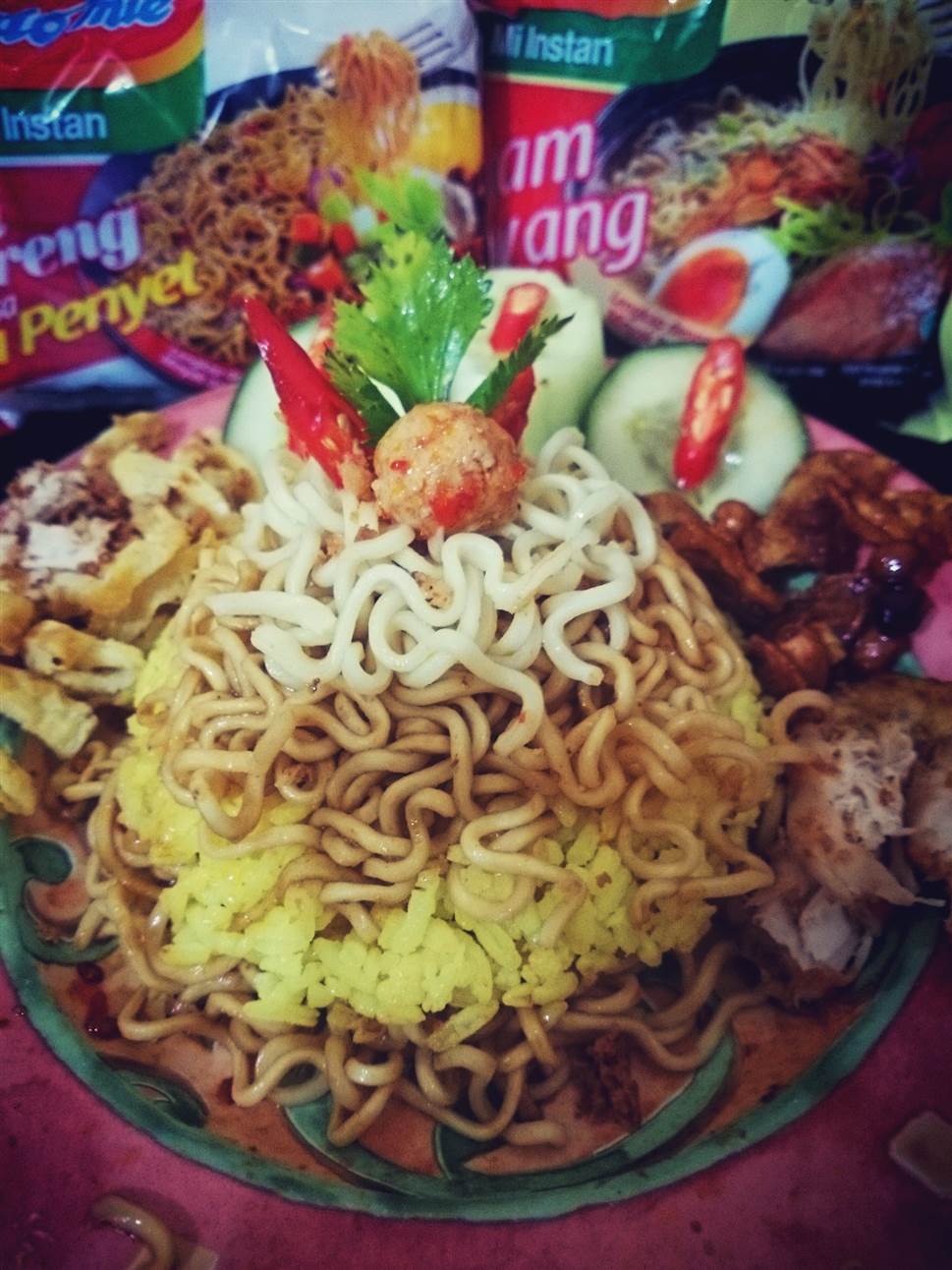 Mini Tumpeng Nasi kuning lapis Indomie 3 rasa