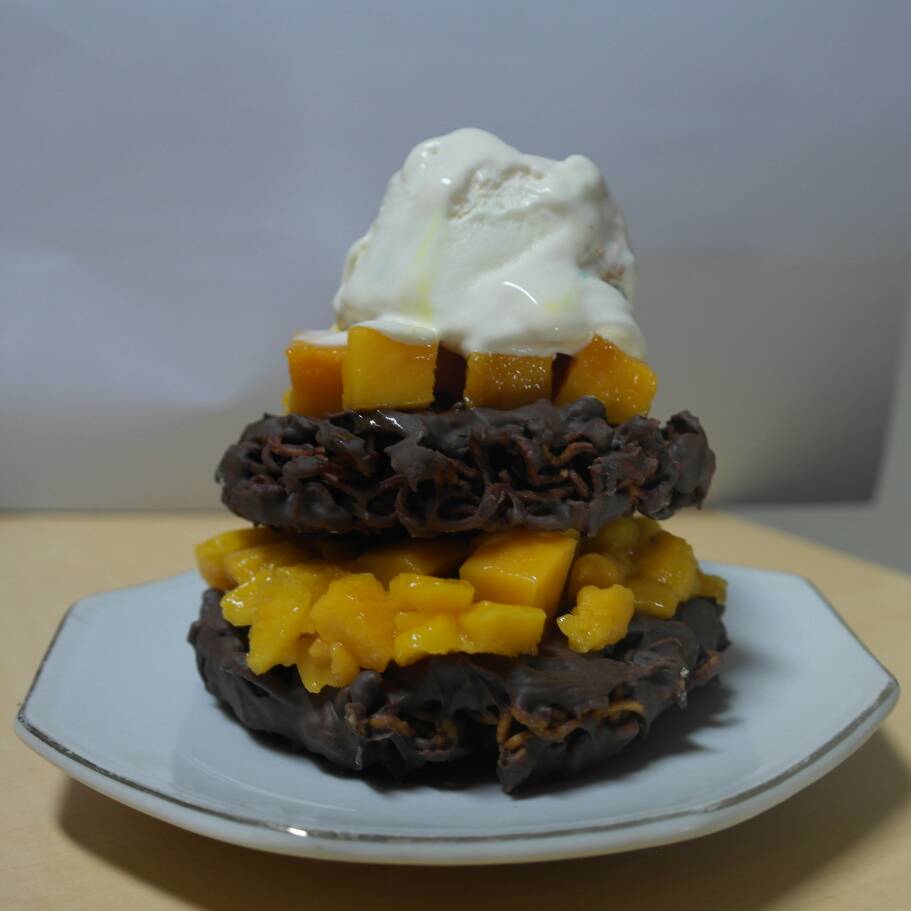 Mie Goreng Cokelat Mangga dengan ice cream