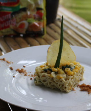 indomie carbonara with sweet corn