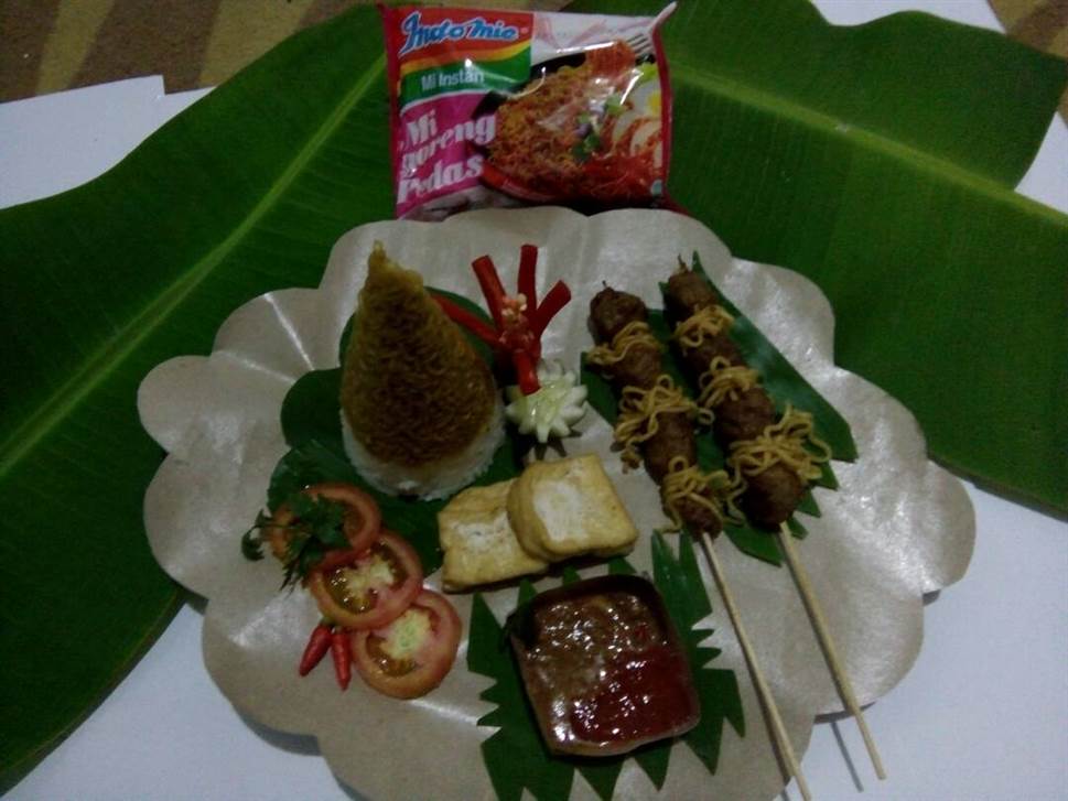 Mi goreng pedas tumpeng nasi pentol bakar.