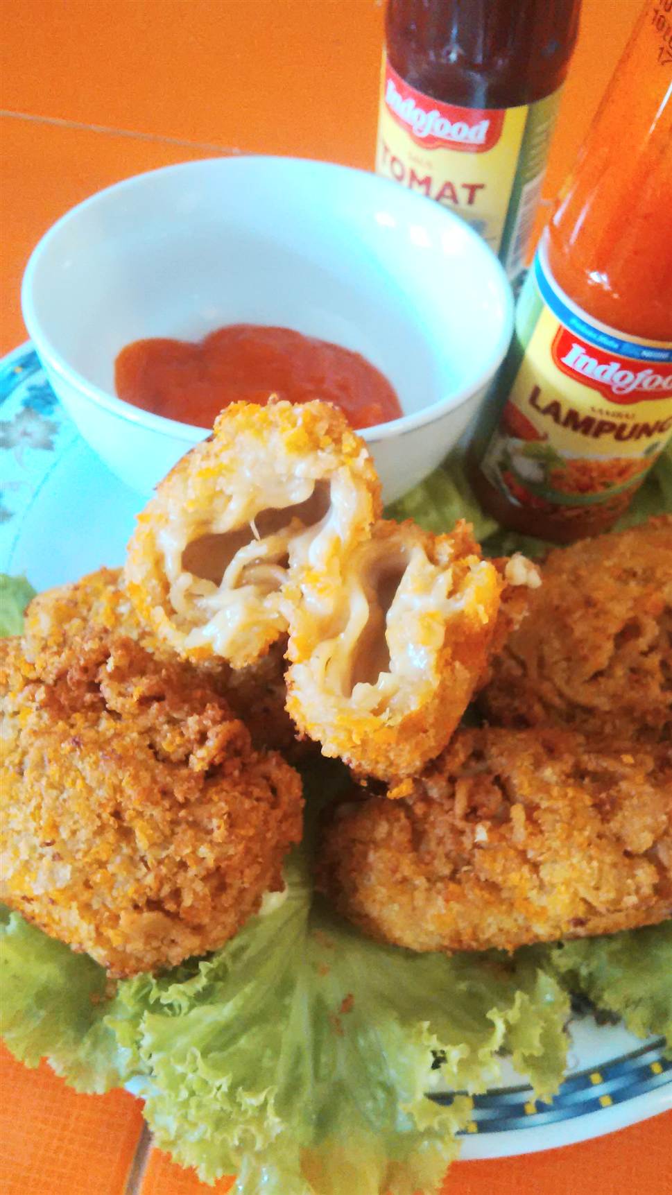 mie isi keju melt (meleleh di dalam, garing di luar)