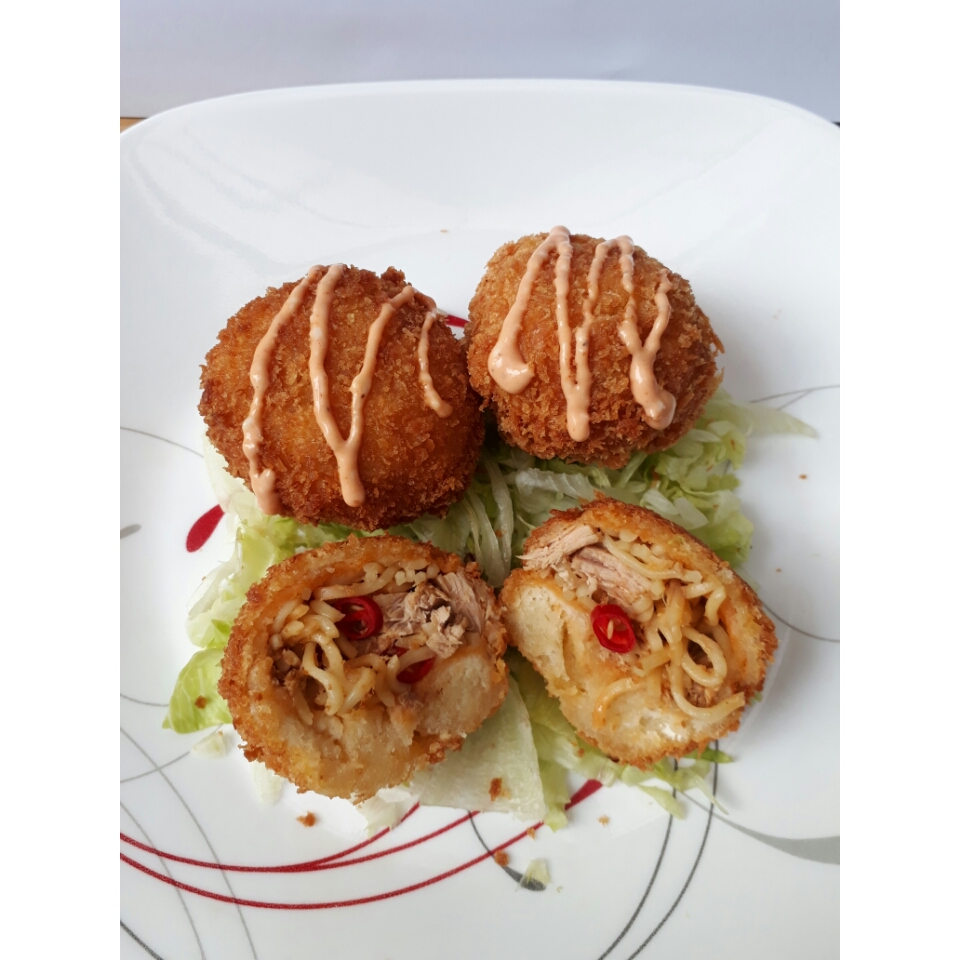 Bola-Bola Indomie Tuna Rica Pedas dengan Saos Mayo Pedas