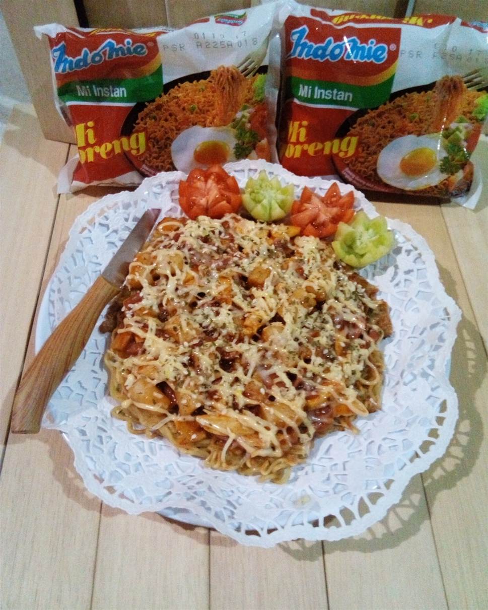 Pizza omlet tteokbokki (with original indomie)